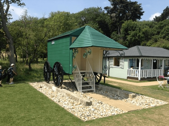 Beach huts may look pretty humble but their story is closely bound up with the history of the seaside resort, going back more than 250 years. In the nineteenth century no trip to the seaside was complete without a dip in the sea from a bathing machine. These vehicles looked like beach huts on wheels and they could be hired for half hour periods. Patrons would get in at the top of the beach, change out of their normal clothes as a horse pulled them towards the seas, then step directly into the water from the front of the machine. For more than 150 years this was how most bathers experienced the sea. Queen Victoria even had her own personal bathing machine built at Osbourne on the Isle of Wight.