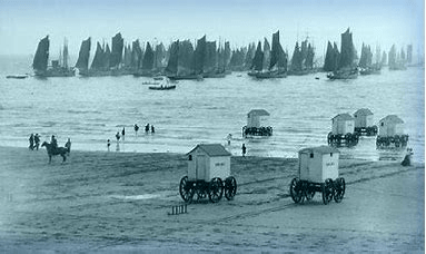 But bathing machines were not invented by the Victorians. By the time Victoria came to the throne in 1837, bathing machines had already become an established feature of any would-be seaside resort. A whole century earlier, mobile changing rooms were in use at Scarborough, the world’s first seaside resort located on the east Yorkshire coast. These simple vehicles, designed for the use of the wealthy but infirm, were evidence of a radical new fascination with the sea. Before this, no one but fishermen and smugglers used the beach. Then doctors began to prescribe the cold sea bath as the latest ‘cure-all’ remedy, the sick went to the coast to be treated and took their families with them. These people needed accommodation and entertainments so the modern concept of the seaside was born.